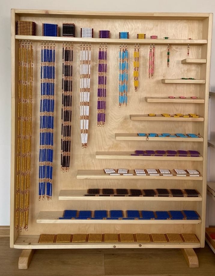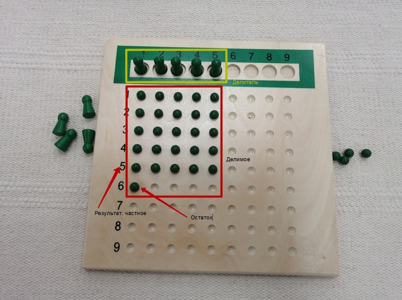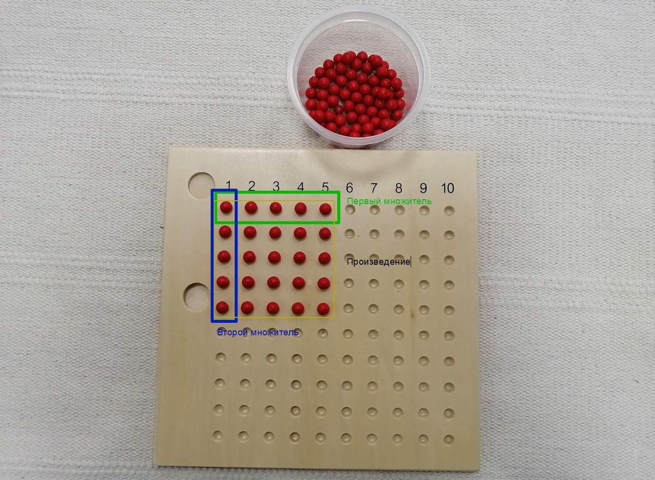 Сложные темы тоже можно визуализировать, пощупать. Например, деление или умножение представлены досками с бусинами.