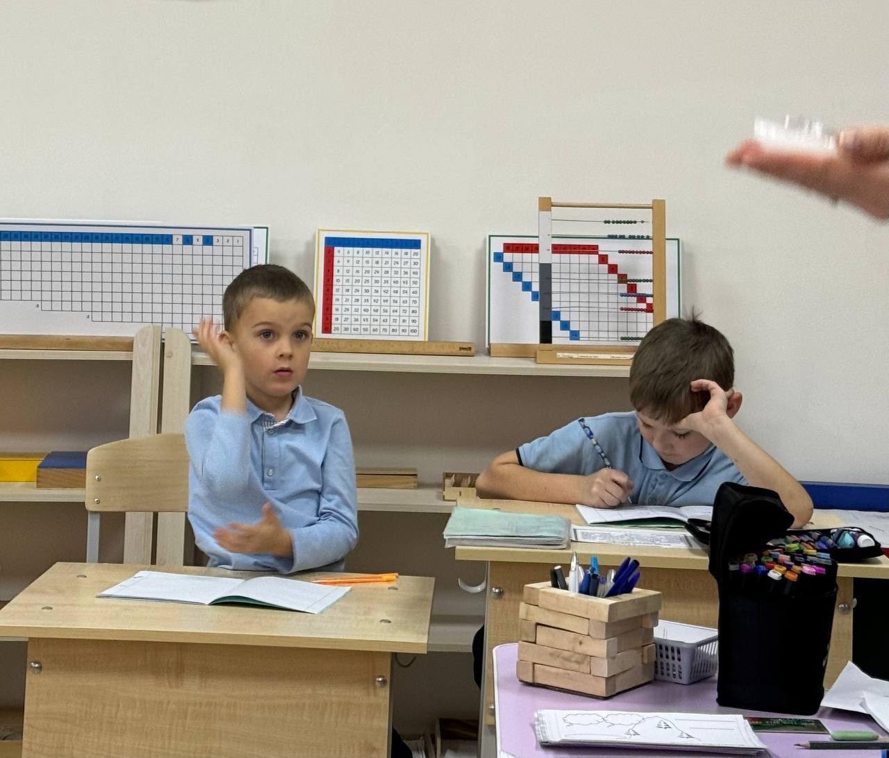 И как показывает многолетний опыт Монтессори школ - такой подход позволяет поддерживать максимальный интерес и включенность каждого школьника в выполнение заданий.